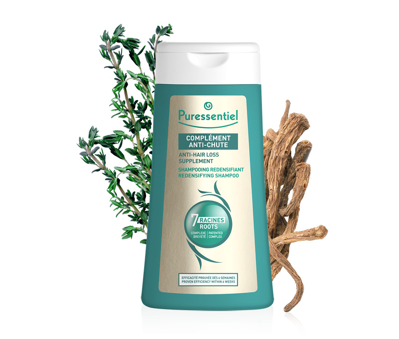 Sa formule 99,9% d’origine naturelle, hautement concentrée en actifs dont un complexe breveté Puressentiel aux 7 racines, est étudiée pour combattre les causes de la chute de cheveux.